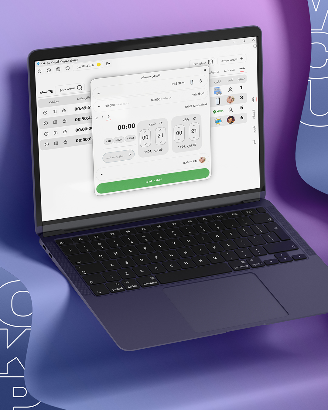 این نرمافزار یک سامانهی یکپارچهی مدیریت گیمنت است که فرآیندهای زمانبندی، کنترل سیستمها و محاسبهی هزینه را بهصورت دقیق و خودکار انجام میدهد. با حذف خطاهای انسانی و بهینهسازی روند ارائهی خدمات، بهرهوری مجموعه را بهطور چشمگیری افزایش میدهد. این سامانه برای گیمنتهایی طراحی شده که بهدنبال نظم عملیاتی، مدیریت حرفهای و پایش دقیق درآمد هستند.
